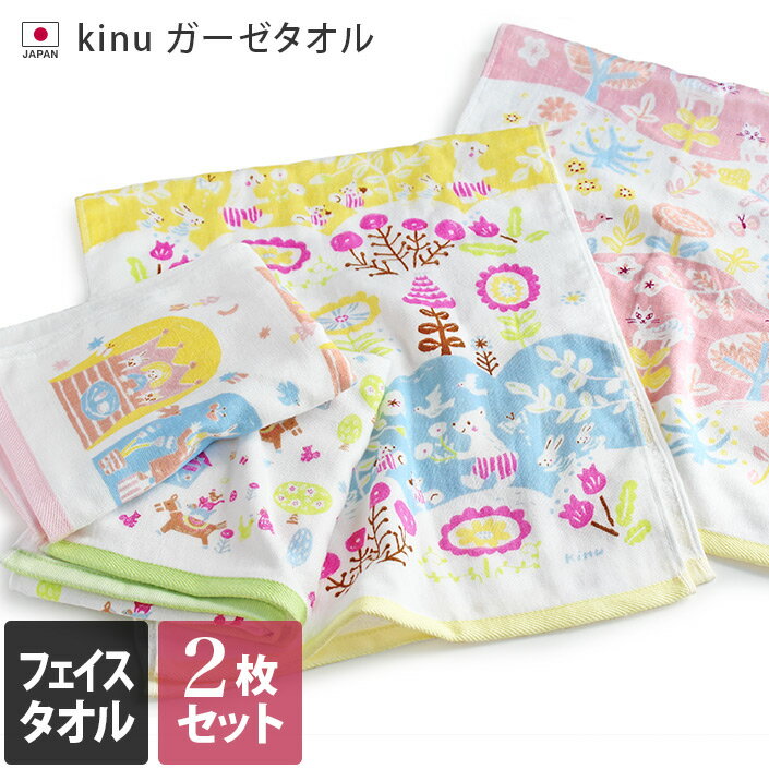 <2枚セット>日本製 ガーゼタオル フェイスタオル kinu / タオル ガーゼ フェイス くま ネコ うま お花 ベビー 出産祝い 内祝い 福袋 国産 ギフト 入園 入学 準備 まとめ買い 布マスク マスク 手作り 手づくり